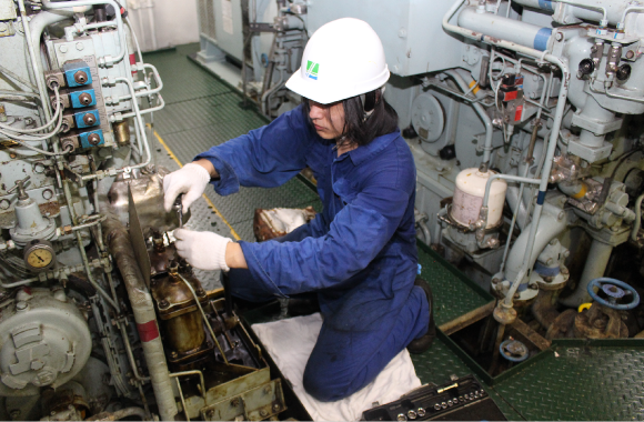 新卒で入社して4年目になりますが、二等機関士として先輩の一等機関士のサポートを行っています。具体的には、エンジンの整備やエンジン系統の管理など、機関室内プラント全体の管理に携わっています。