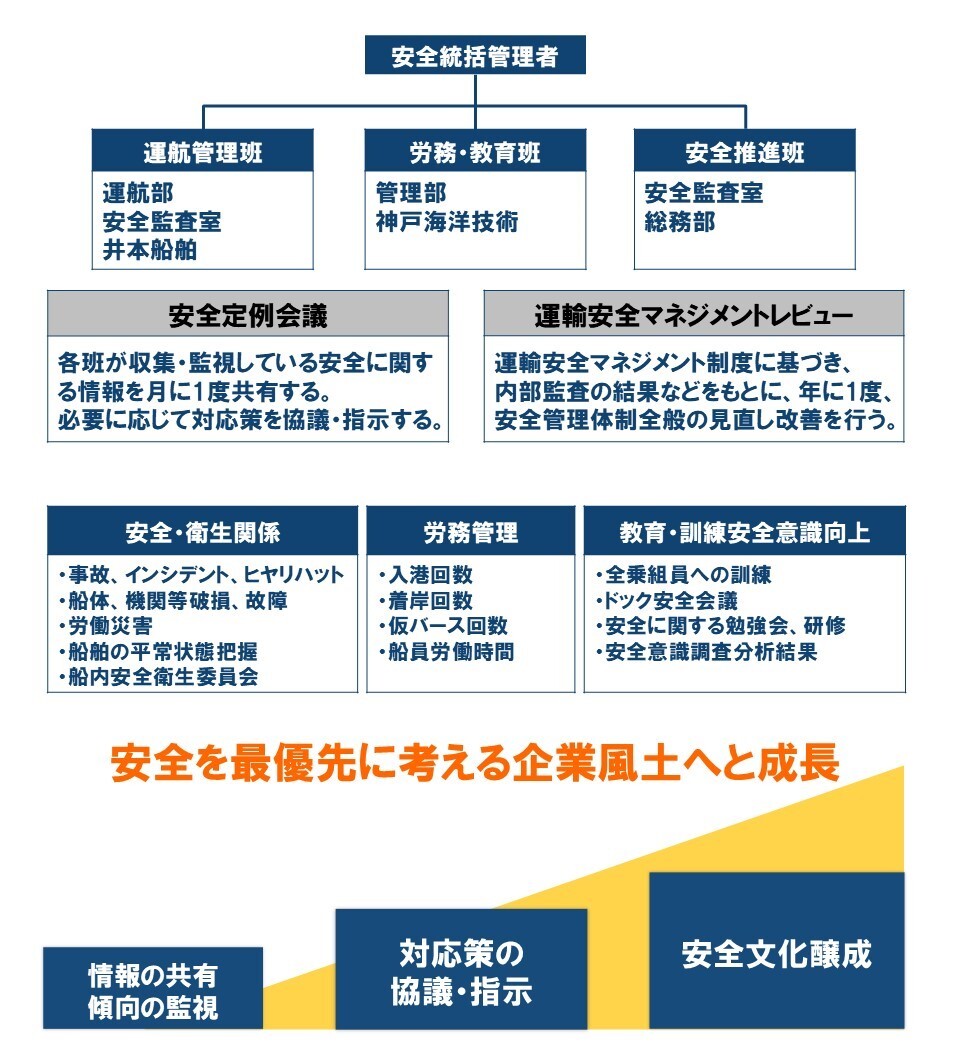 井本商運は、船主として、船員派遣会社として、そしてオペレーターとして、安全運航を見つめ続けます。